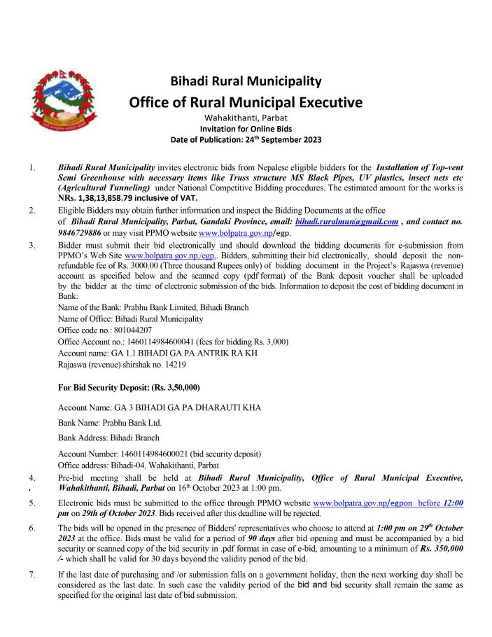 Installation of Top-vent Semi Greenhouse with necessary items like Truss structure MS Black Pipes, UV plastics, insect nets etc (Agricultural Tunnelling)