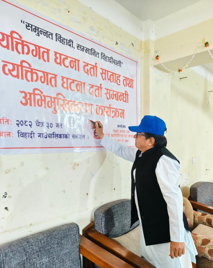 "व्यक्तिगत घटना दर्ता सप्ताह तथा व्यक्तिगत घटना दर्ता सम्बन्धी अभिमुखिकरण कार्यक्रम" का साथमा " एक महिने सिप विकास बेकरी तालिम"को शुभारम्भ। कार्यक्रमका केही तस्विरहरू। (मिति२०८२ चैत्र ३० गते सोमबार)